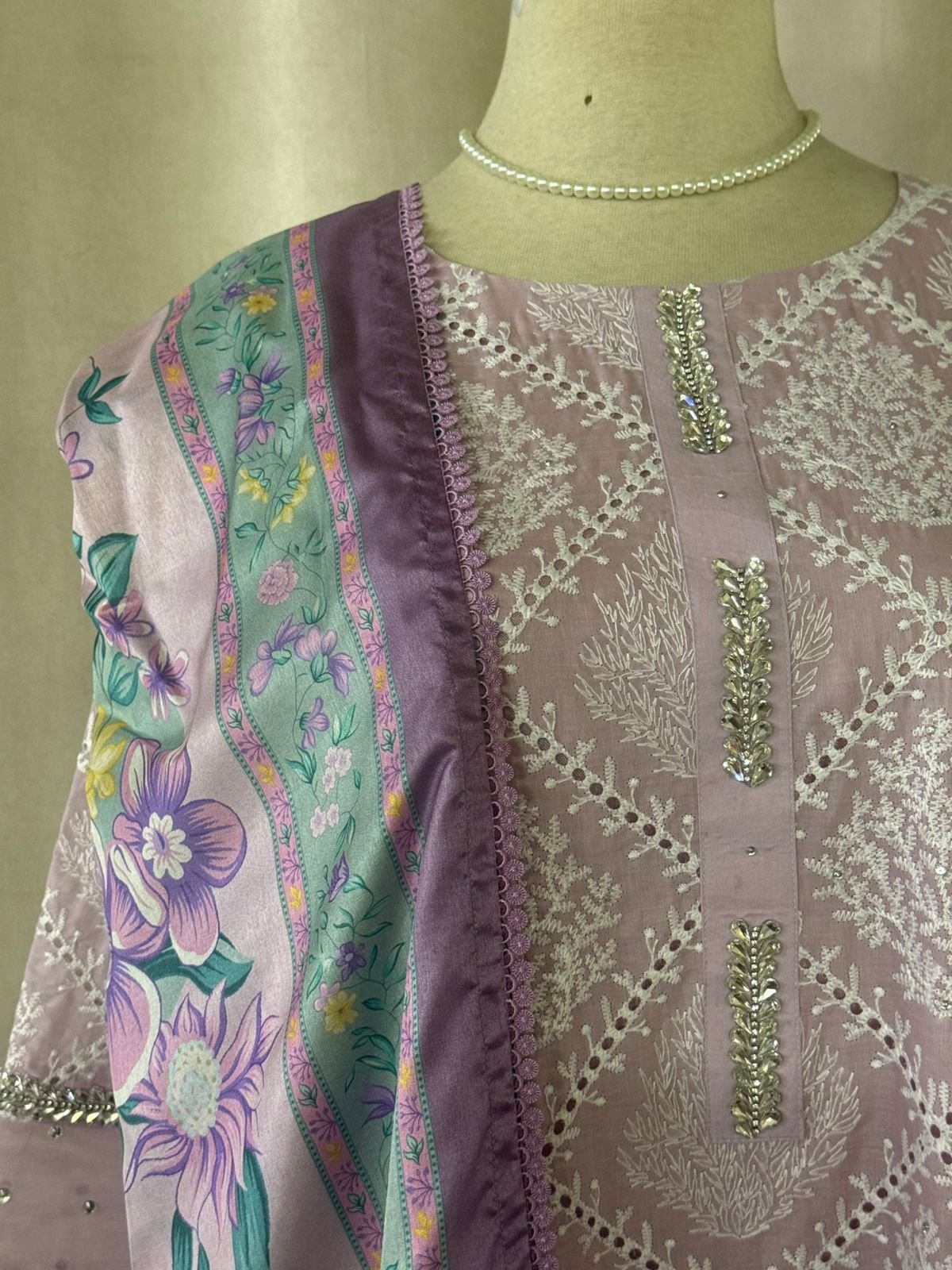 Chicken kameez with lawn pant and printed silk dupatta ✨